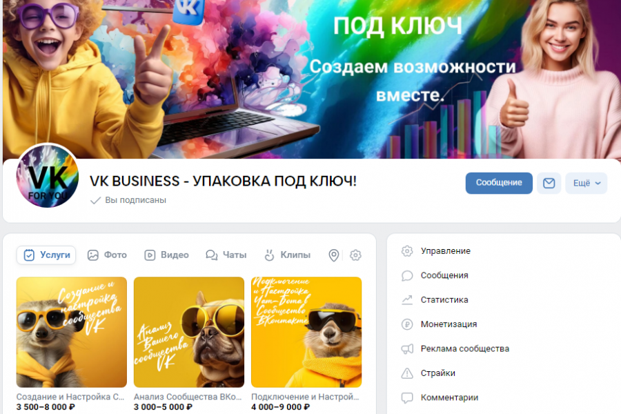 Это неотъемлемая часть успешного бизнеса, которое позволяет не только находить новых клиентов, но и поддерживать связь с уже существующей аудиторией. Наша услуга по созданию и настройке сообщества ВК предназначена для тех, кто хочет вывести свой бизнес на новый уровень в цифровом пространстве.