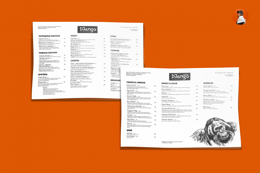 Разработка дизайна и верстка макета одноразового или многоразового меню для кофеен, ресторанов, лаунджей, пекарен, сервисов доставки, баров и других видов общепита!