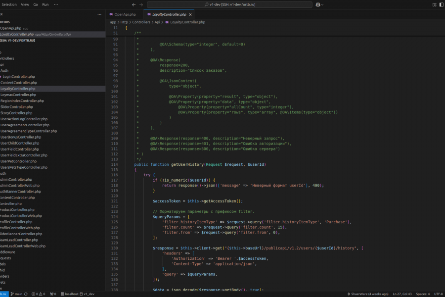 • Документацию API в формате OpenAPI/Swagger