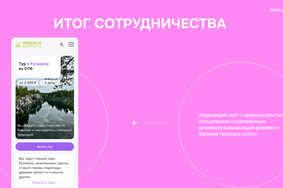 Меня зовут Ася, я UX/UI дизайнер с опытом создания уникальных и эффективных сайтов, которые помогают бизнесам расти и привлекать клиентов. Мой подход — это не просто красивые картинки, а продуманный дизайн, который работает на результат.