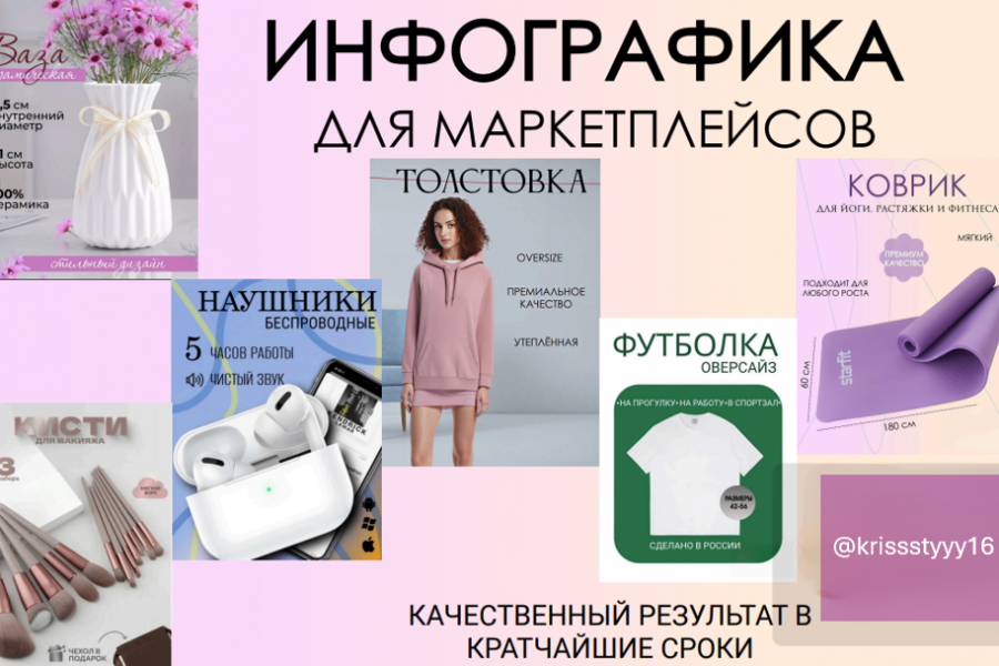 Получите четкую, красивую и информативную графику, которая увеличит продажи и привлечёт внимание аудитории. Доверьте создание инфографики специалисту, который сделает ваш продукт заметнее и привлекательнее среди конкурентов!