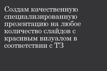Создам качественную специализированную презентацию на любое количество слайдов с красивым визуалом в соответствии с ТЗ.