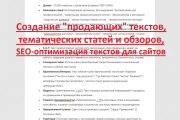 Подготовлю ТЕКСТЫ по вашей заявке на любую тематику, опираясь на ваши вводные данные (черновики, пожелания, ТЗ), на анализ бизнес-ниши и свой 25-летний опыт их создания (буклеты крупных холдингов, тематические статьи в проф.изданиях, SEO-оптимизированные тексты для страниц сайтов и промо-страниц, блоги и посты в соц.сетях, личное творчество).