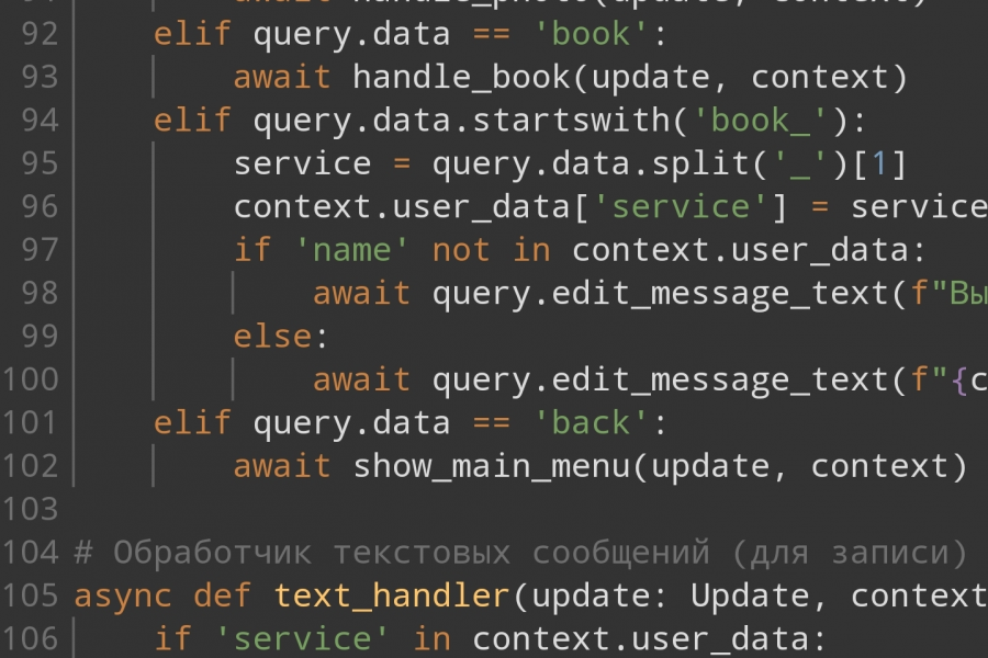 Разработка на Python. Цена от 2000 рублей. Стоимость и цена зависят от сложности бота и задач, которые он должен выполнять. Возможны интеграции со сторонними сервисами (CRM, GoogleSheets и др.)