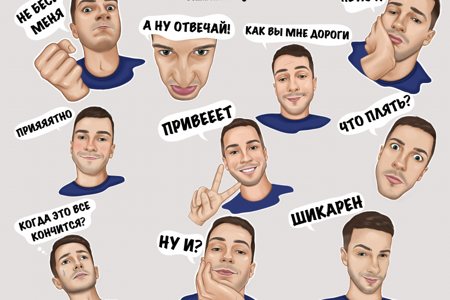 Эмоджи Стикерпак - это ваша точная мини копия!) И отличный способ представить себя клиентам/заказчикам/подписчикам, способ выделиться! Стикерпаки - новый тренд!)