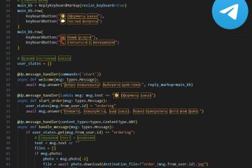 — Реализую любые шаги: меню, формы, кнопки, приём заявок, ответы, уведомления. Без лишнего — только то, что нужно.