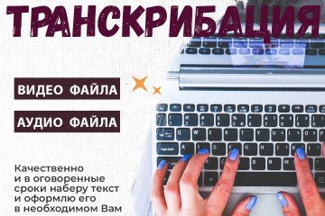 Готова выполнить транскрибацию аудио и видео файлов Цена за 1 час записи - 1200 рублей. Готовность готового текста: от 1 дня