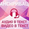 Транскрибация видео, аудио в текст (200 рублей 30 мин), (300 рублей 60 минут).
