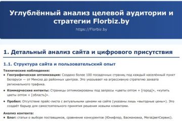 В отчёт входят: прогноз структуры клиентской базы, дорожная карта развития сегментов, система ключевых метрик (NPS, доля повторных заказов, LTV/CAC). Результат — стратегия роста с фокусом на высокомаржинальные сегменты и снижение стоимости привлечения клиента. Анализ цифрового присутствия, RFM-сегментация, маркетинговая стратегия под ключ — для компаний, готовых масштабировать выручку через данные, а не догадки.