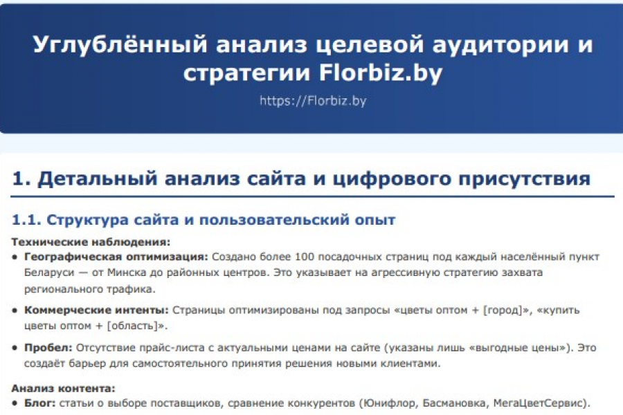 Провожу конкурентный анализ с выявлением слепых зон рынка и позиционированием вашего УТП.