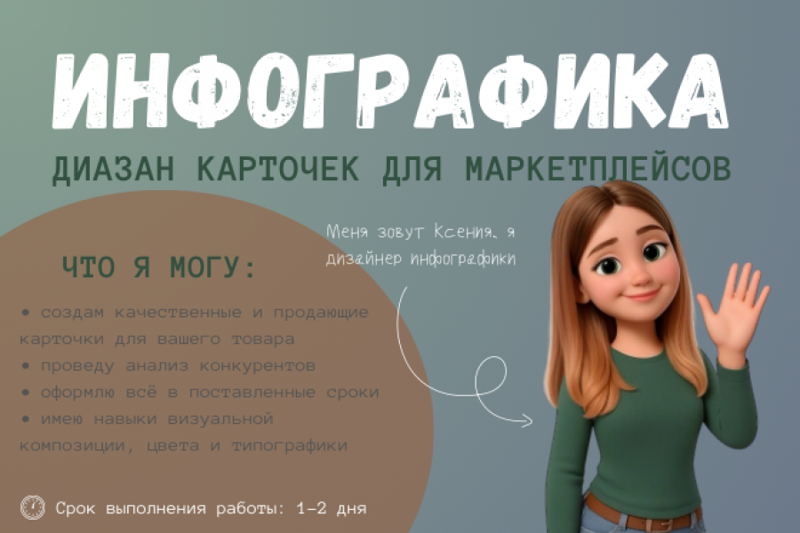 Предоставляю такие услуги:создам продающую карточку для вашего товара, баннер, афишу, презентацию, различные макеты для сайтов