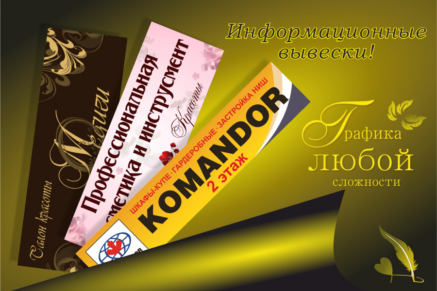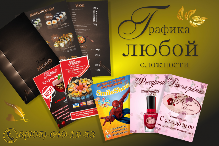 Буклет, лифлет, брендбук, евробук, книга? Не проблема! Любые виды наружной рекламы, полиграфии, оформление для соцсетей (расчитаю размеры инструментами разработчика под любую из имеющихся и пользующихся популярностью на сегодняшний день!).