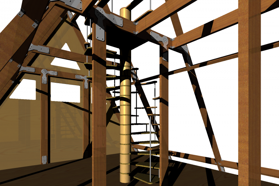 Винтовые лестницы для благоустройства жилых и технических помещений обладают малой прекционной площадью и при этом позволяют обеспечивать комфортный подъём/спуск за счёт применения стандартной эргономической пропорции высота/ширина ступени.