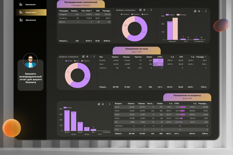Все маркетинговые и продуктовые показатели в одном интерактивном автоматизированном отчете под ключ.