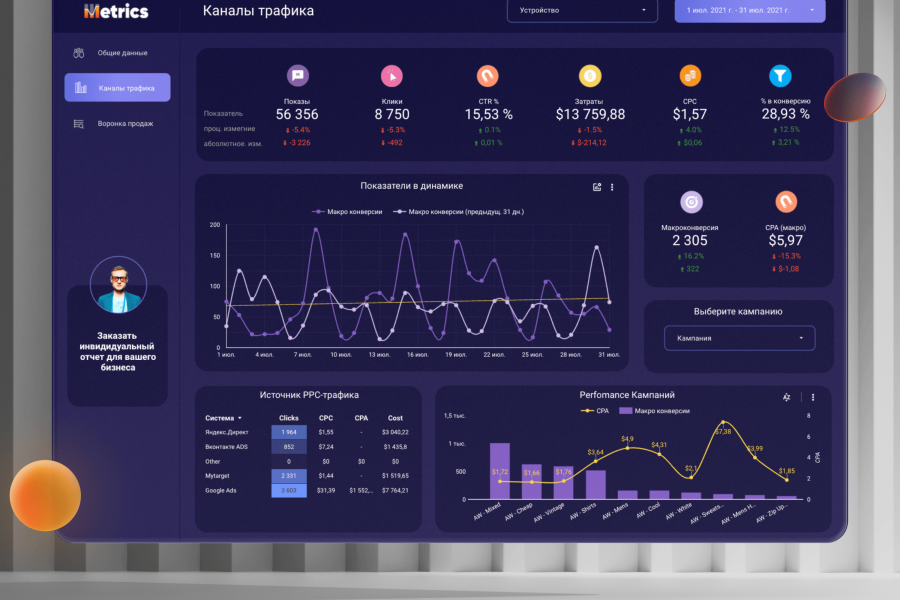 Такой подход позволяет принимать решения на основании данных «на одном листе/дашбордах» без возможности для руководителей или маркетологов погружаться в интерфейс рекламных кабинетов и систем аналитики. Тем самым экономя время и принимая верные управленческие решения.
