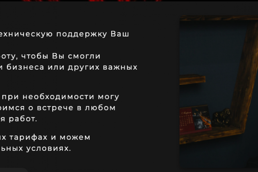 Всю работу делаю удалённо, при необходимости могу приехать в офис или договоримся о встрече в любом другом месте для обсуждения работ.