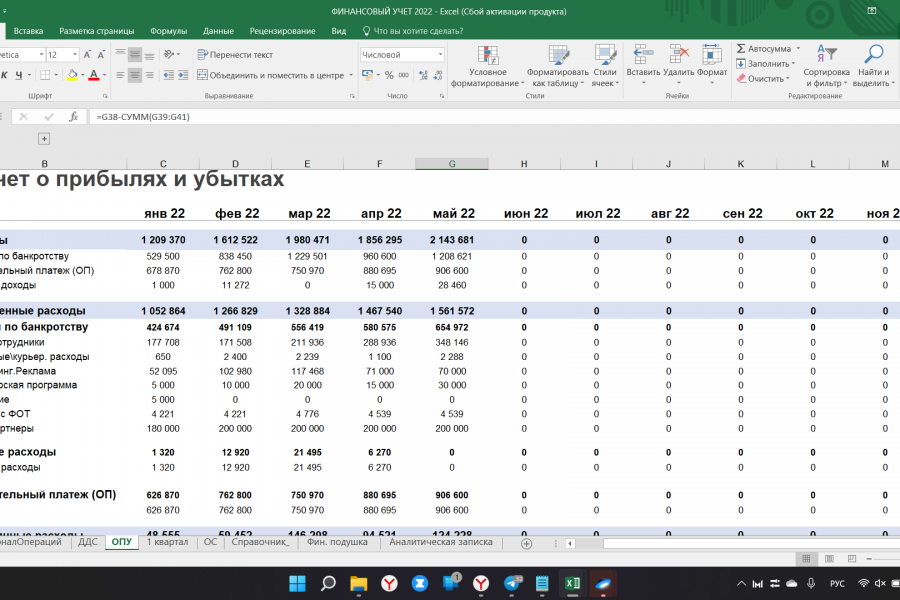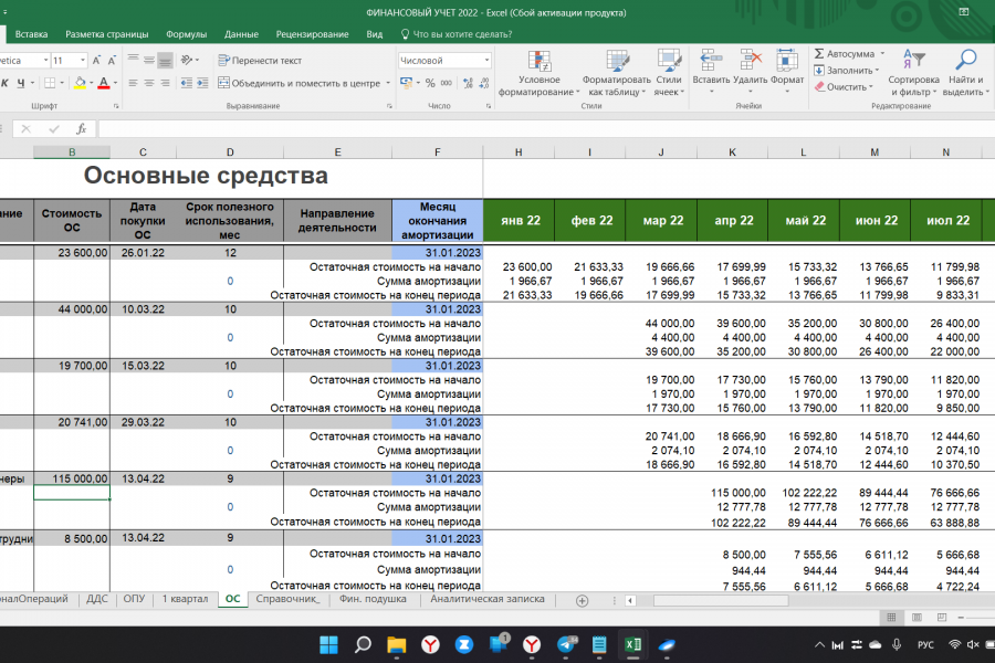 Внедрение фин. учета в Excel