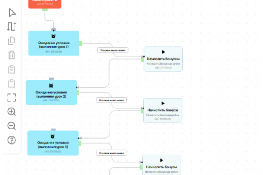 В работу входит настройка процесса для 1 тренинга, количество уроков не более 30. Начисление будет происходить автоматически и последовательно - процесс будет "ждать" выполнение первого задания, потом второго и т.д.