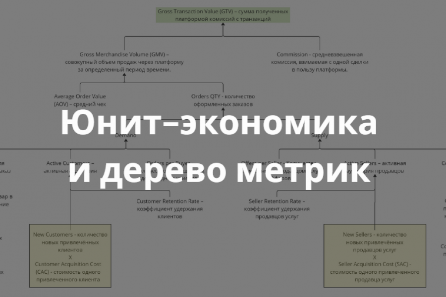 Юнит-экономика и дерево метрик В итоге будет декомпозированные метрики и калькулятор для расчёта целевой метрики бизнеса Доработка до 100% результата