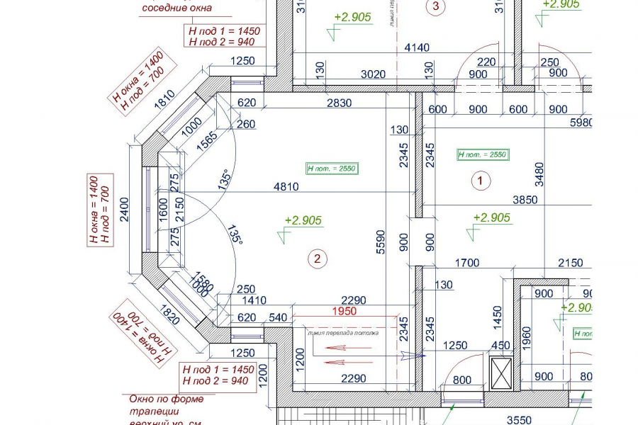 Помещения с криволинейными, сложными или многоуровневые потолками - дополнительная услуга.