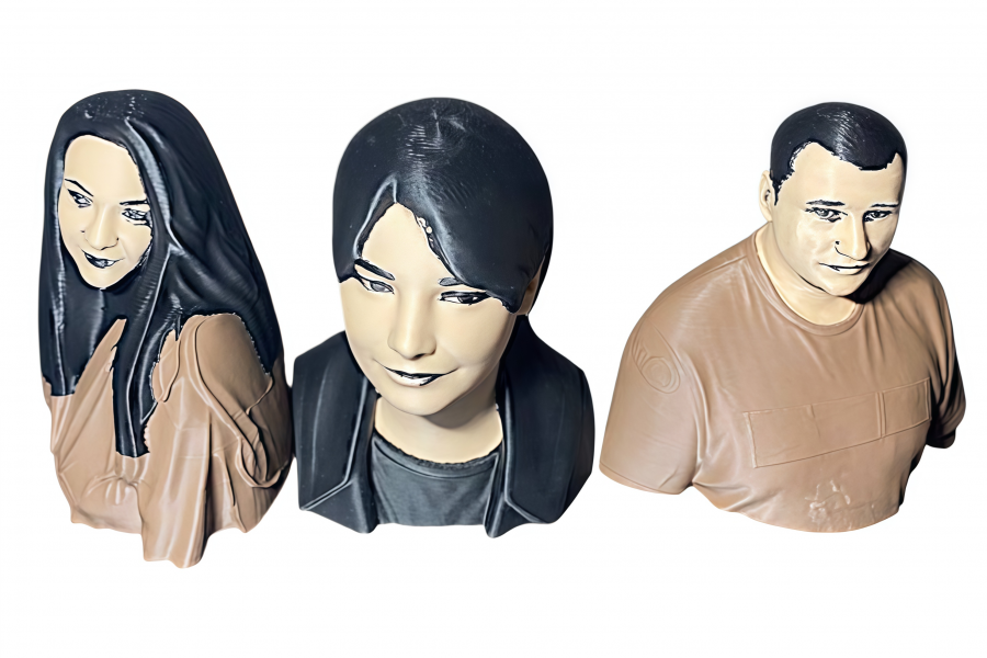 Моделирую бюсты людей по фото. Проекты создаются в Bambu Studio для последующей печати на цветных принтерах Bambu Lab. Раскрас модели редактирую как для быстрой печати(используя 2-3 цвета, время печати фигурки высотой 10см составляет 10-20 часов), так и для многоцветной, но более долгой печати.
