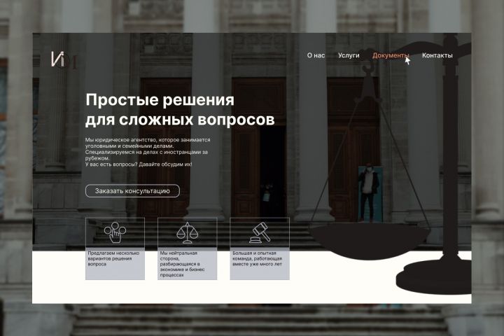 Информационная страница юридической фирмы. Основная цель - форма заказа звонка.