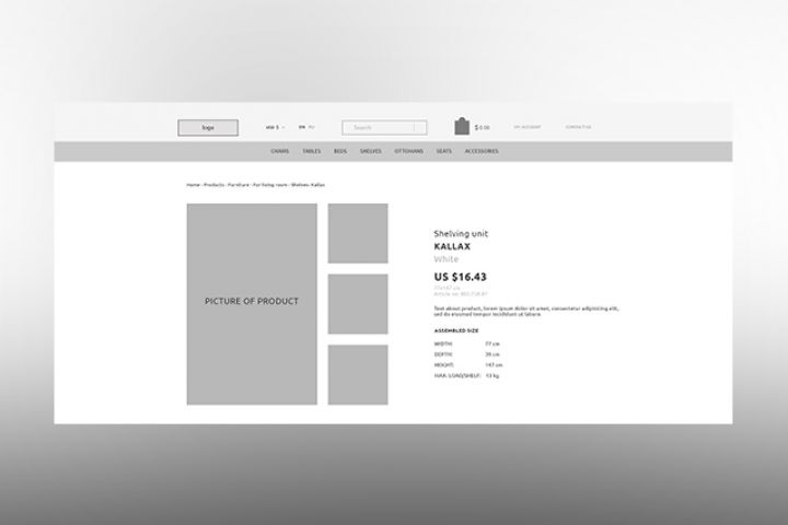 Привет страницы товара для интернет-магазина, продающего мебель.
