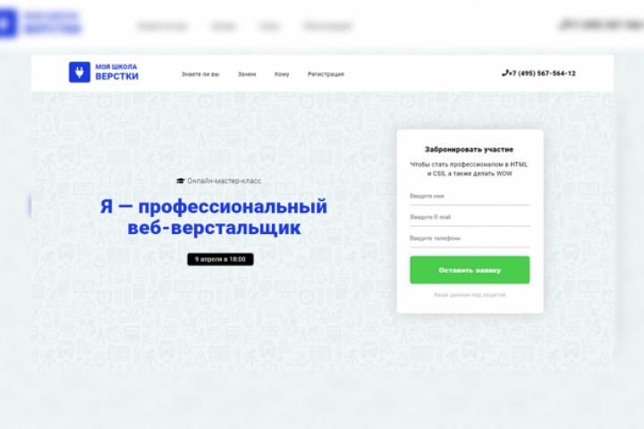 Верстка сайта "школы верстки". Сайт имеет в себе формы,различные карточки. Данный проект выполнен в синих тонах, код аккуратный,написан по методологии БЭМ! Благодаря грамотному коду сайт быстро загружается !