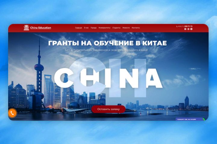 Разработка сайта в формате Landing Page для молодой образовательной организации, которая занимается предоставлением грантов для обучения в Китае. Акцент сделан на простоте получения предоставленных услуг.