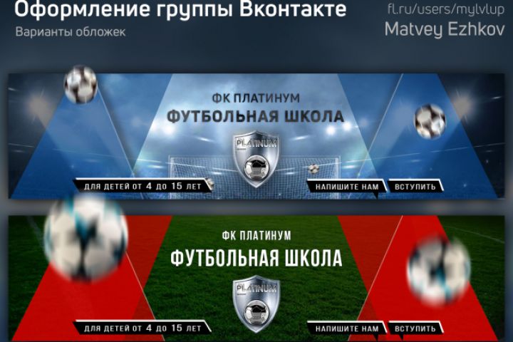 2 варианта обложки для группы Вконтакте При заказе шапки группы за 1000 рублей предлагаются дополнительные варианты дизайна