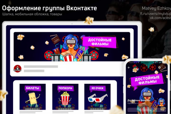 Оформление паблика Вк Шапка + Мобильная живая обложка + товары – 2000 рублей