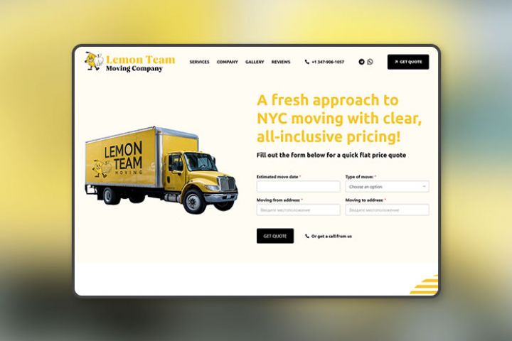Создание лендинга для мувинговой компании Lemon Team Moving в Нью-Йорке.