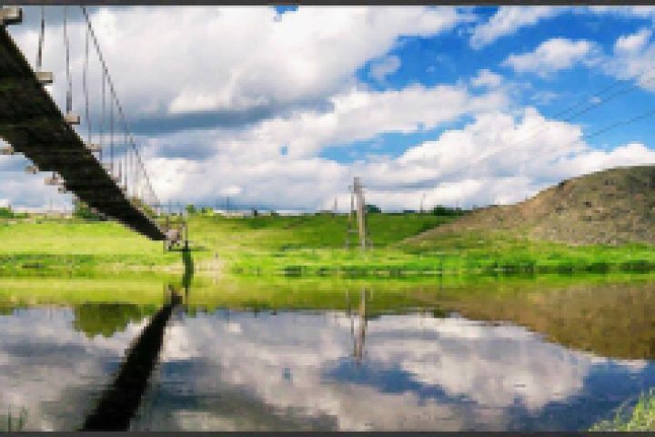 навесной мостик,через реку ЧУСОВАЯ