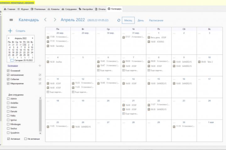 Календарь, задачи помещаются автоматически для сотрудников, которым назначается задание Напоминание по почте и телеграм-боту