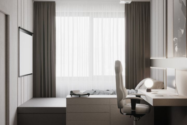 Минималистичная спальня с гардеробом и спальным местом