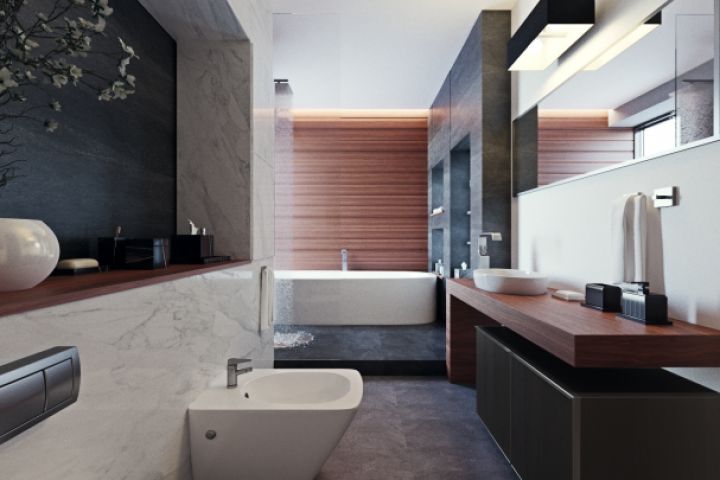 Ванная комната. Вариант с деревянными элементами