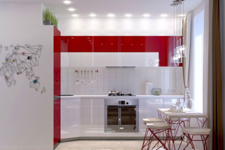 Интерьер выполнен в современном стиле, с красными акцентами (по пожеланию заказчиков).