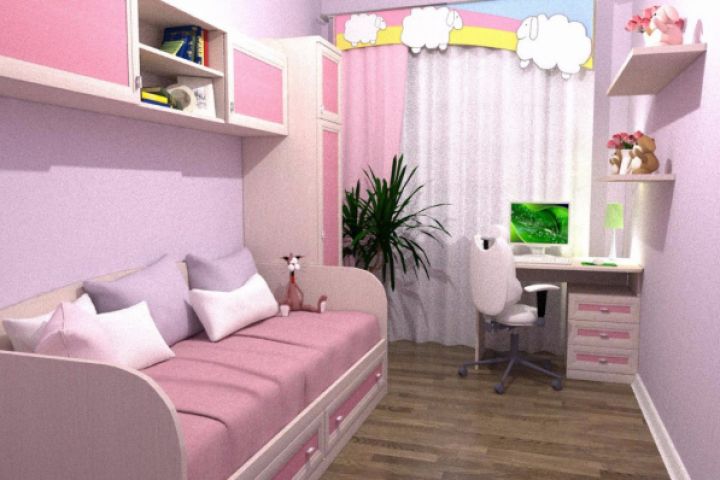 Детская, комната, визуализация, 3D, комната, девочка, розовая
