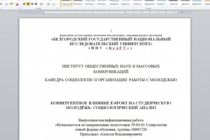 Магистерская диссертация "Конвергентное влияние e-Sports на студенческую молодёжь. Социологический анализ"