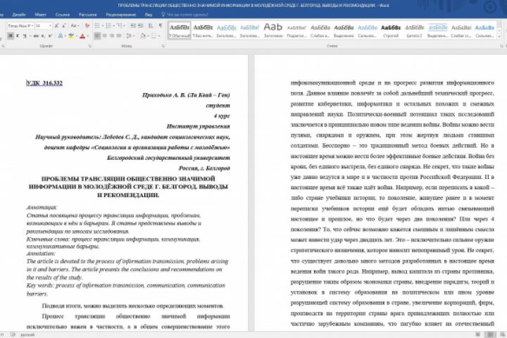 Проблемы трансляции общественно значимой информации в молодёжной среде г. Белгород. Выводы и рекомендации