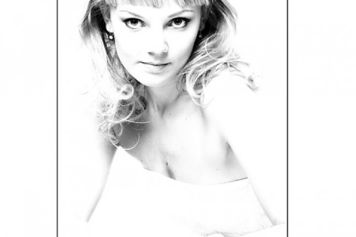 Портрет женщины выполненный в высоком ключе. изображение было распечатано размером 120 см по длинной стороне и было центром экспозиционной композиции на рекламной выставке.