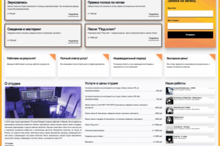 Разработка дизайна сайта, верстка, внедрение Wordpress, разработка дополнительного функционала: виджеты аудио плееров, оповещение в телеграмм о новой заявке