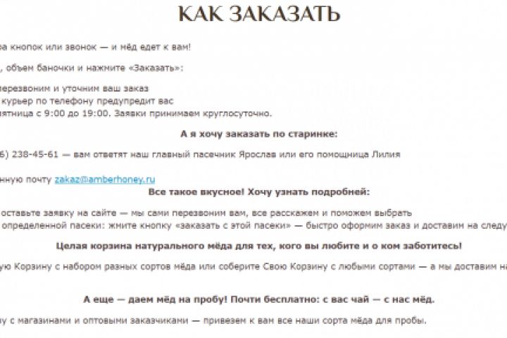 Ярослав и Лилия продают хороший природный мёд. Текст для страницы "Как заказать": все способы заказа в компании.
