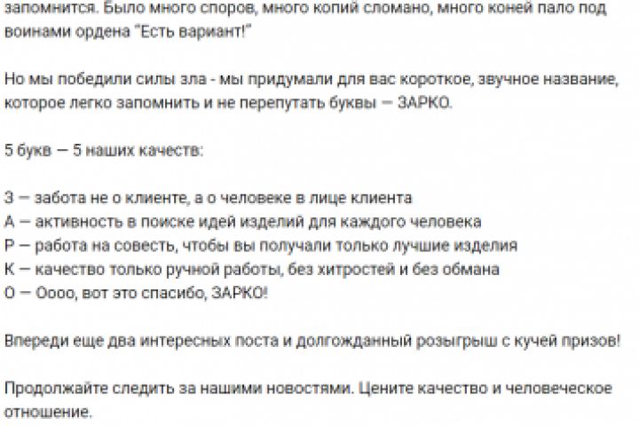 Придумал нейминг и рассказал об этом в публикации подписчикам группы в ВК.