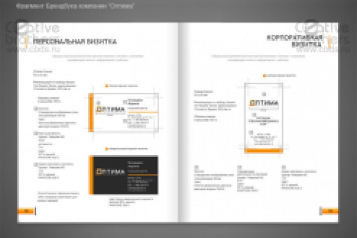 Фрагмент Брендбука компании "Оптима" Общее количество по описанию бренда 32 страницы.