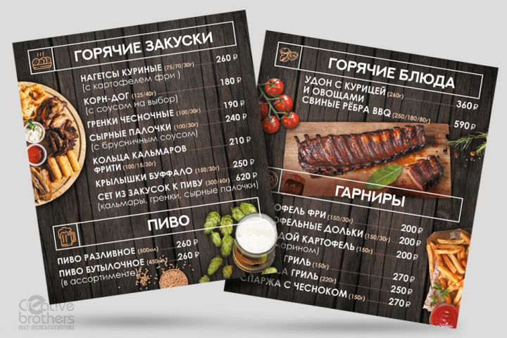 Меню для кафе - лайтбокс панели