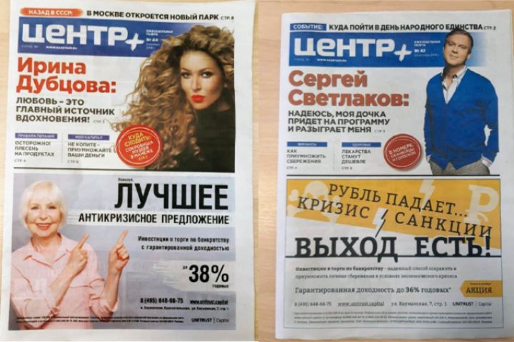 Рекламные модули в газету ЦЕНТР+ (два нижних) для "UNITRUST CAPITAL"