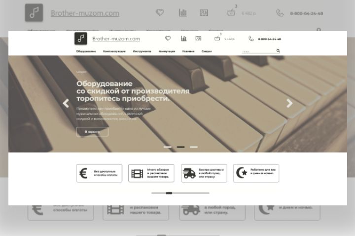 Разработка сайта интернет магазина музыкальных инструментов под ключ "Brother-muzon"