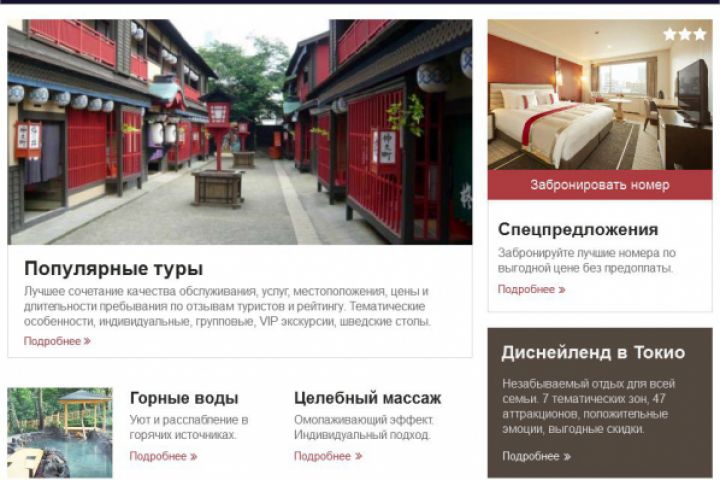 Макет главной страницы сайта, в котором туристам предоставляется возможность тщательно продумать своё путешествие, заранее выбрав подходящее место для размещения и достопримечательности в зависимости от бюджета и рейтинга.