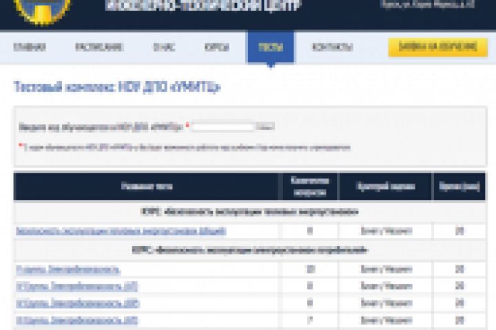 BSV-STUDIO разработала тестовый комплекс для учебного центра НОУ ДПО “УМИТЦ”. В чем смысл этого приложения: ученики учебного центра перед экзаменом готовятся дома, путем тестирования на сайте, после контрольного теста результат сохраняется, непосредственно перед началом экзамена, сотрудники центра распечатывают результат и на основание этого результата проходит экзамен в виде собеседования. Для того, чтобы приложением не пользовались другие учебные центры, был разработан уникальный код, который сам меняется раз в неделю, после чего раздается ученикам. Приложение было внедрено в уже существующий сайт разработанный не нами.